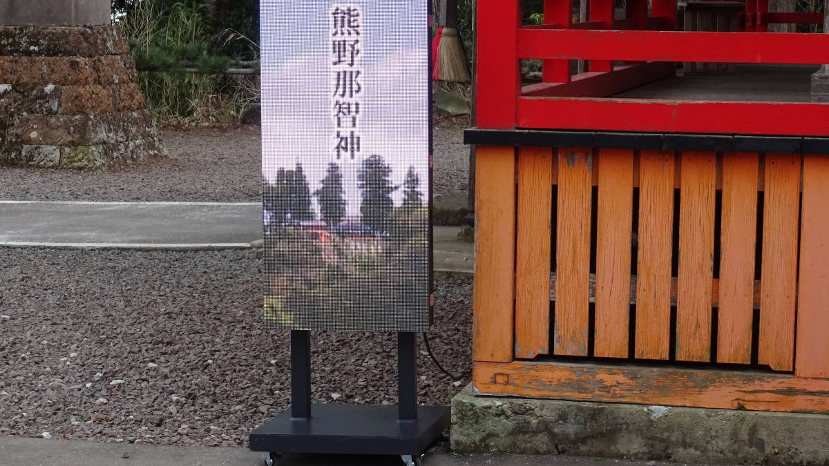 社殿の前に電子掲示版が登場しました